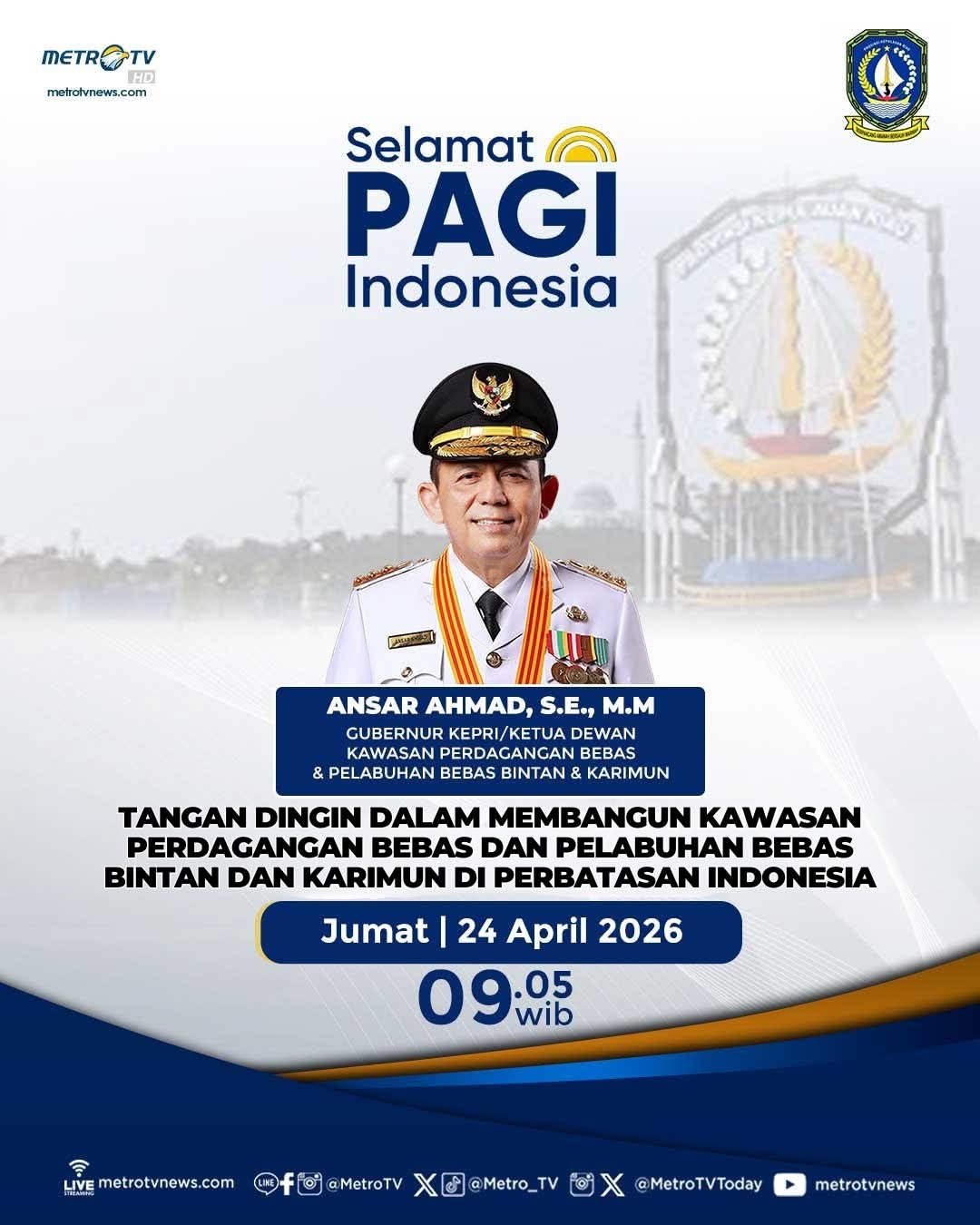 Tanjungpinang, Anambasnews.com – Gubernur Kepulauan Riau, Ansar Ahmad, dijadwalkan tampil dalam program nasional Selamat Pagi Indonesia yang disiarkan langsung di Metro TV, Jumat (24/4/2026) pagi.