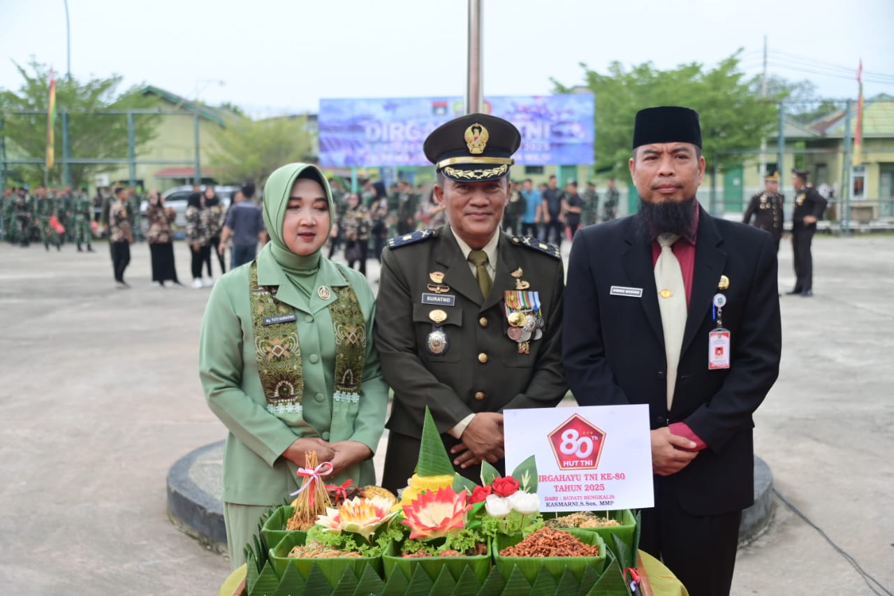 Upacara yang berlangsung khidmat dengan tema “TNI Prima – TNI Rakyat – Indonesia Maju,” dipimpin oleh Kasdim 0303/Bengkalis, Mayor Inf Suratno, mewakili Dandim 0303/Bengkalis. Acara ini dihadiri oleh jajaran Forkopimda Kabupaten Bengkalis, unsur TNI-Polri, pejabat pemerintah daerah, veteran, organisasi kemasyarakatan, pelajar, dan tamu undangan lainnya.