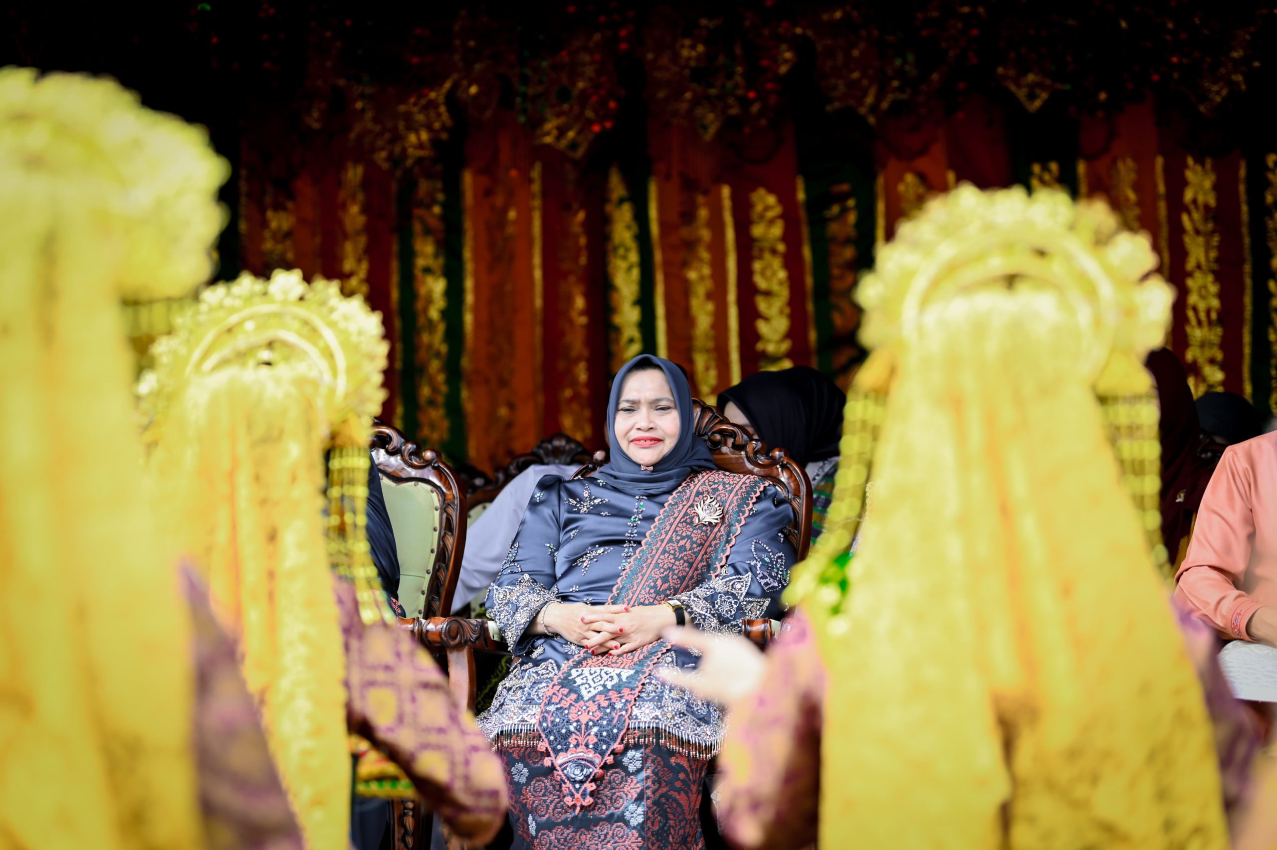 Bupati Bengkalis, Kasmarni di sambut dengan Tari di Acara Hari Jadi ke-513 Kabupaten Bengkalis.