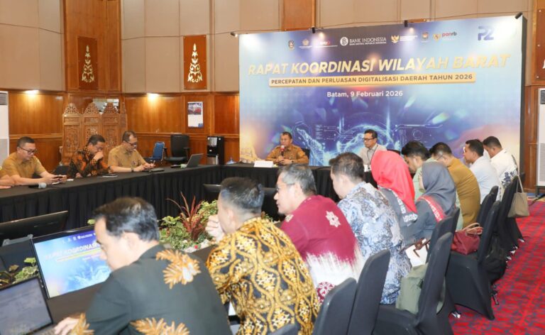 Batam, Anambasnews.com – Sekretaris Daerah (Sekda) Kota Batam, Firmansyah, mewakili Wali Kota Batam Amsakar Achmad dan Wakil Wali Kota Batam Li Claudia Chandra, menghadiri Rapat Koordinasi Wilayah (Rakorwil) dan Katalis I Percepatan dan Perluasan Digitalisasi Daerah (P2DD) Tahun 2026. Kegiatan yang berlangsung di Kantor Perwakilan Bank Indonesia Provinsi Kepulauan Riau ini digelar pada Senin, 9 Februari 2026.