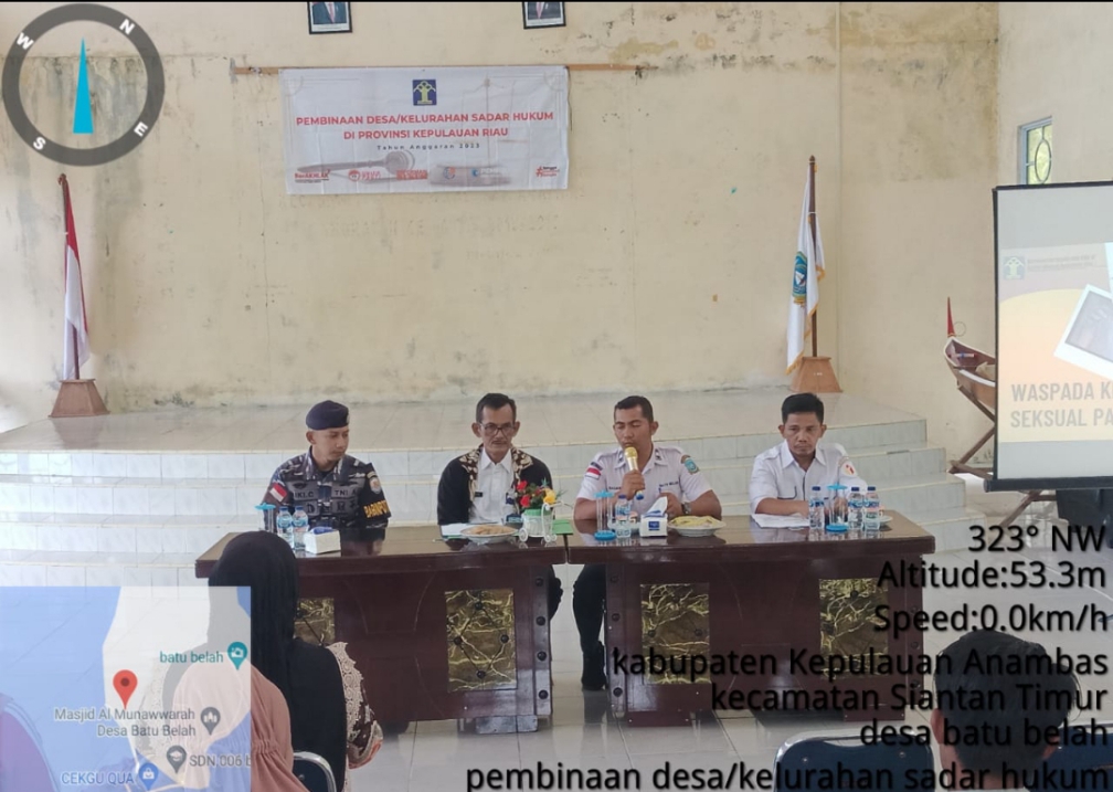 ANAMBASNEWS.COM – Kanwil Kementerian Hukum dan HAM Provinsi Kepulauan Riau menggelar kegiatan pembinaan Desa/Kelurahan Sadar Hukum, di Desa Batu Belah, Kabupaten Kepulauan Anambas, Rabu, 10 Mei 2023 pagi.