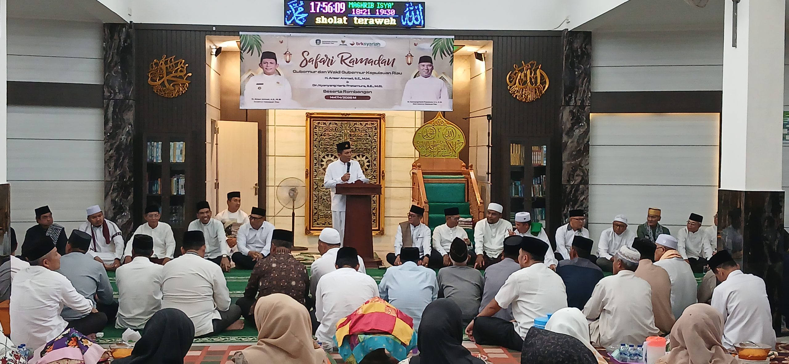 Gubernur Kepulauan Riau Ansar Ahmad bersama Wakil Gubernur Nyanyang Haris Pratamura melaksanakan Safari Ramadan di Masjid Babul Ikhlas, Kecamatan Singkep, Kabupaten Lingga, Senin (23/2/2026). (Foto: Dani/Anambasnews com)