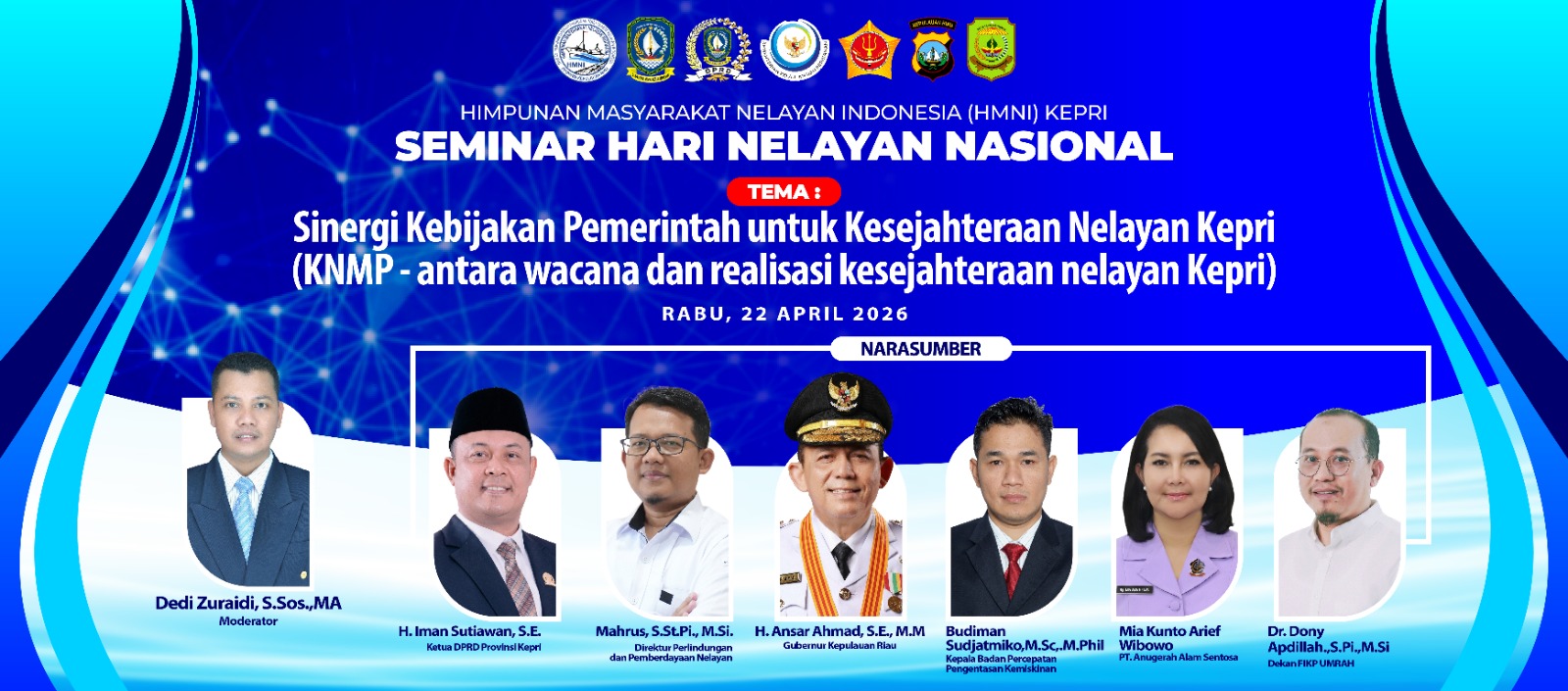 Seminar ini akan menghadirkan narasumber dari pemerintah pusat, Pemerintah Provinsi Kepri, serta kalangan akademisi yang kompeten di bidang kelautan dan perikanan.