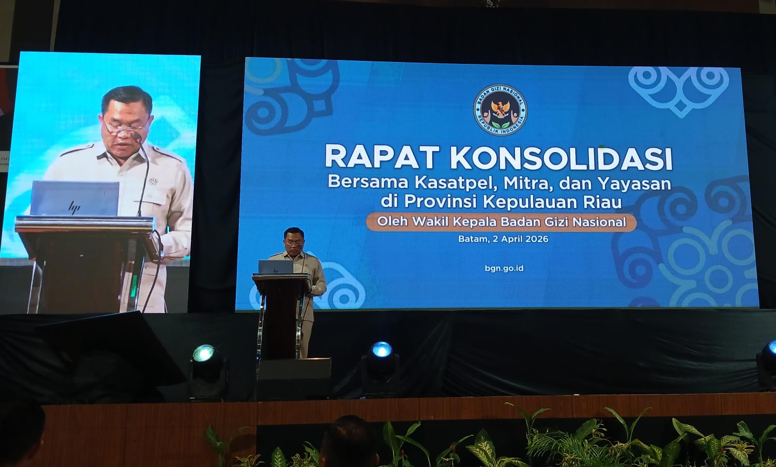 Batam, Anambasnewa.com – Wakil Kepala Badan Gizi Nasional Bidang Operasional Pemenuhan Gizi Badan Gizi Nasional (BGN), Irjen Pol. (Purn.) Sony Sonjaya, menegaskan bahwa seluruh dapur dalam pelaksanaan program Makan Bergizi Gratis (MBG) wajib memenuhi standar yang telah ditetapkan, termasuk memiliki Sertifikat Laik Higiene Sanitasi (SLHS) dan sertifikat halal.